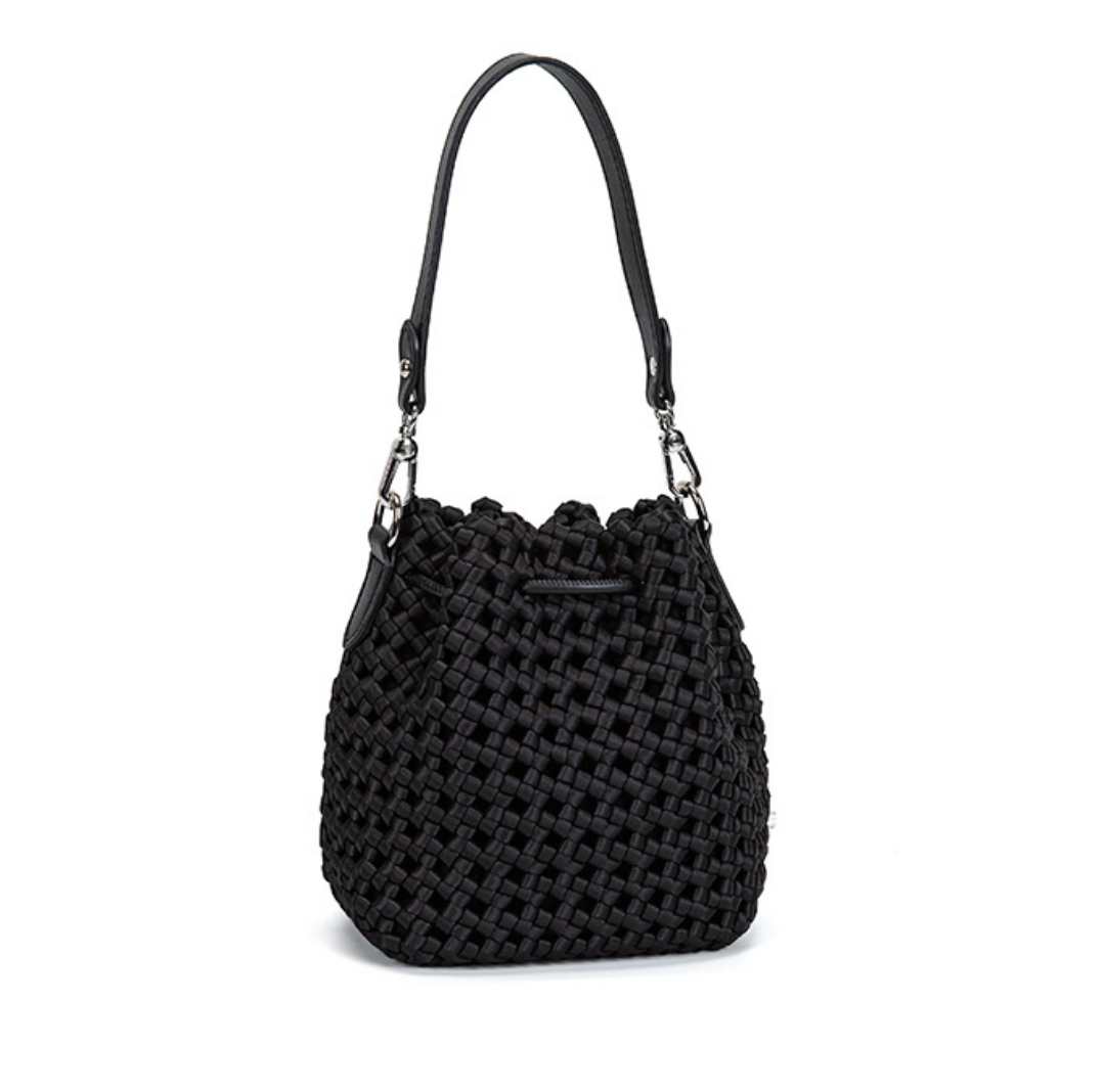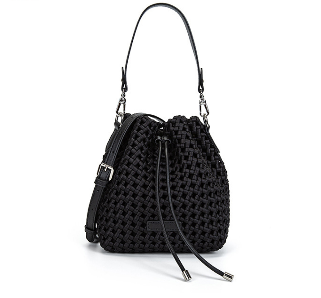 新款尼龙布编织水桶包法式小众高级感手工编织手提单肩斜挎包