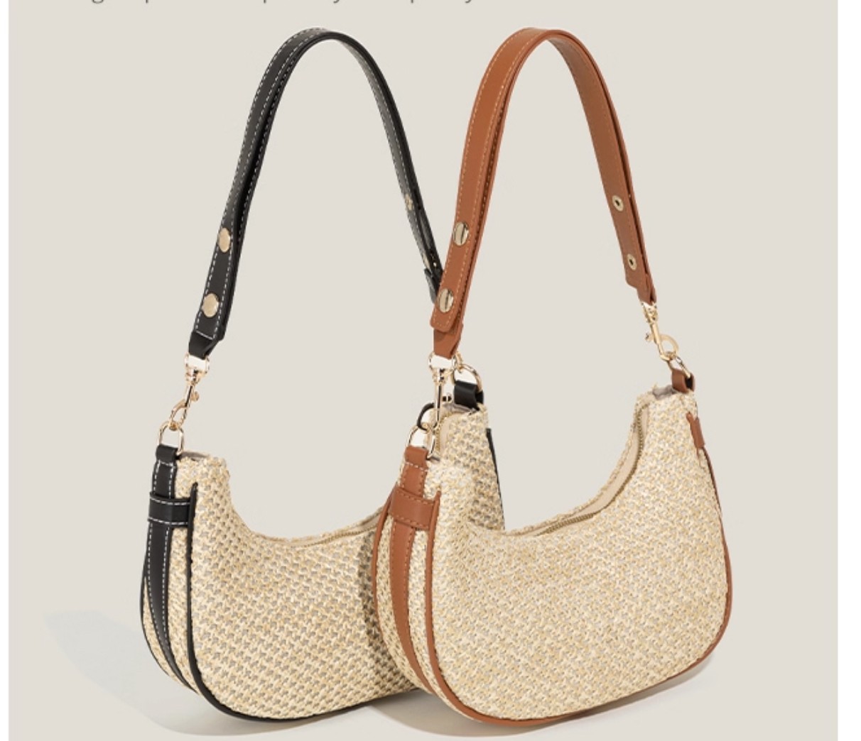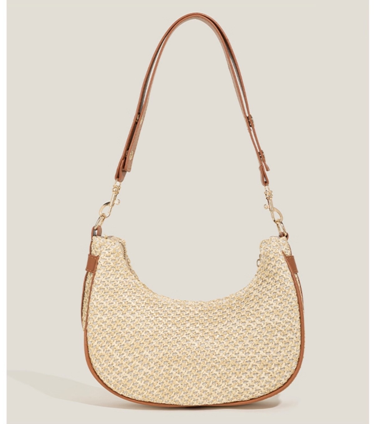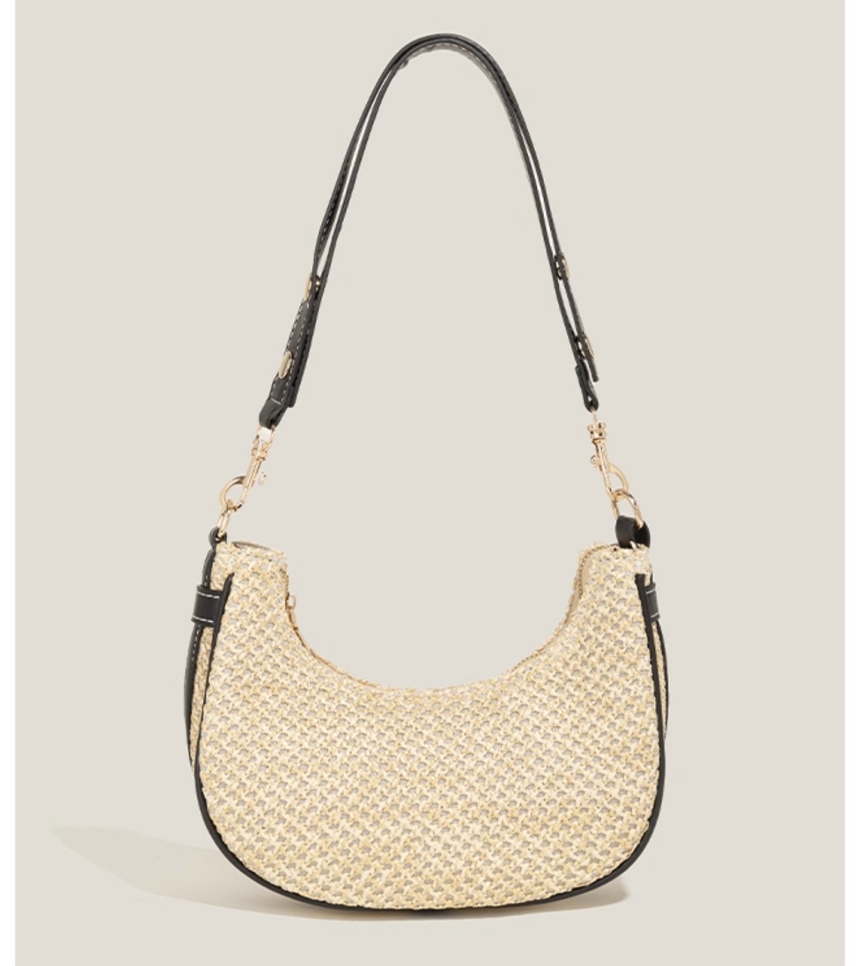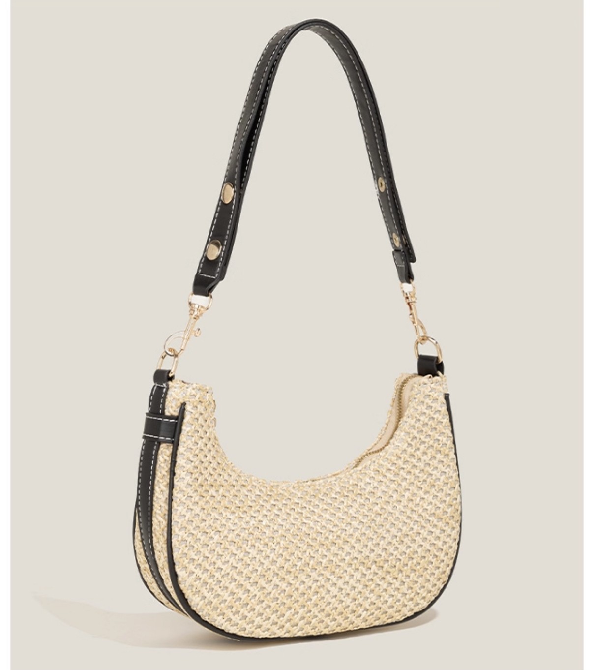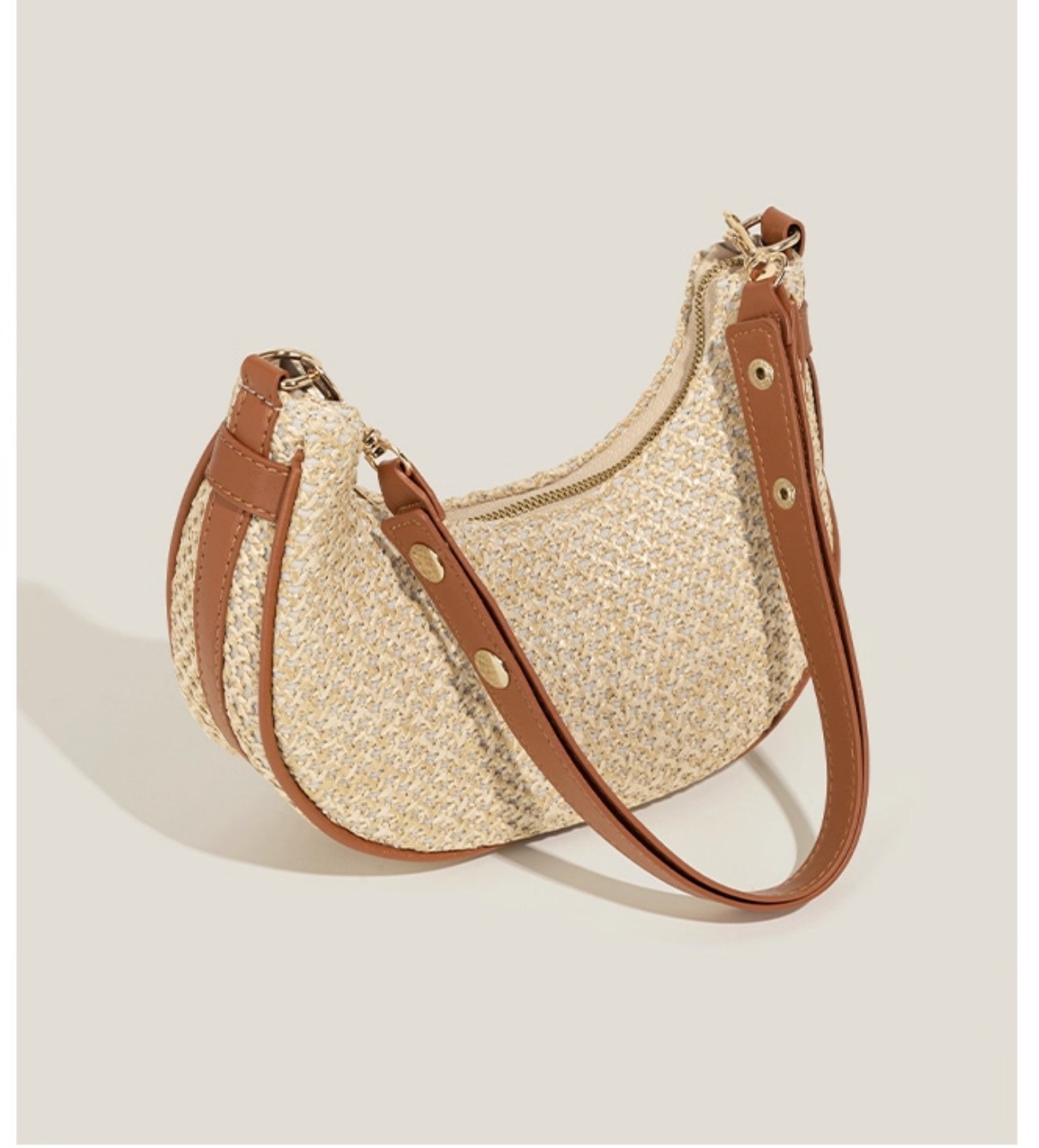 PU Leather Fashion Half Round Handmade Woven Armpit Bag Handbag