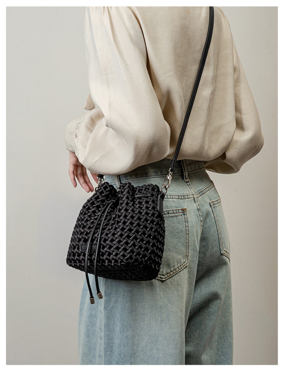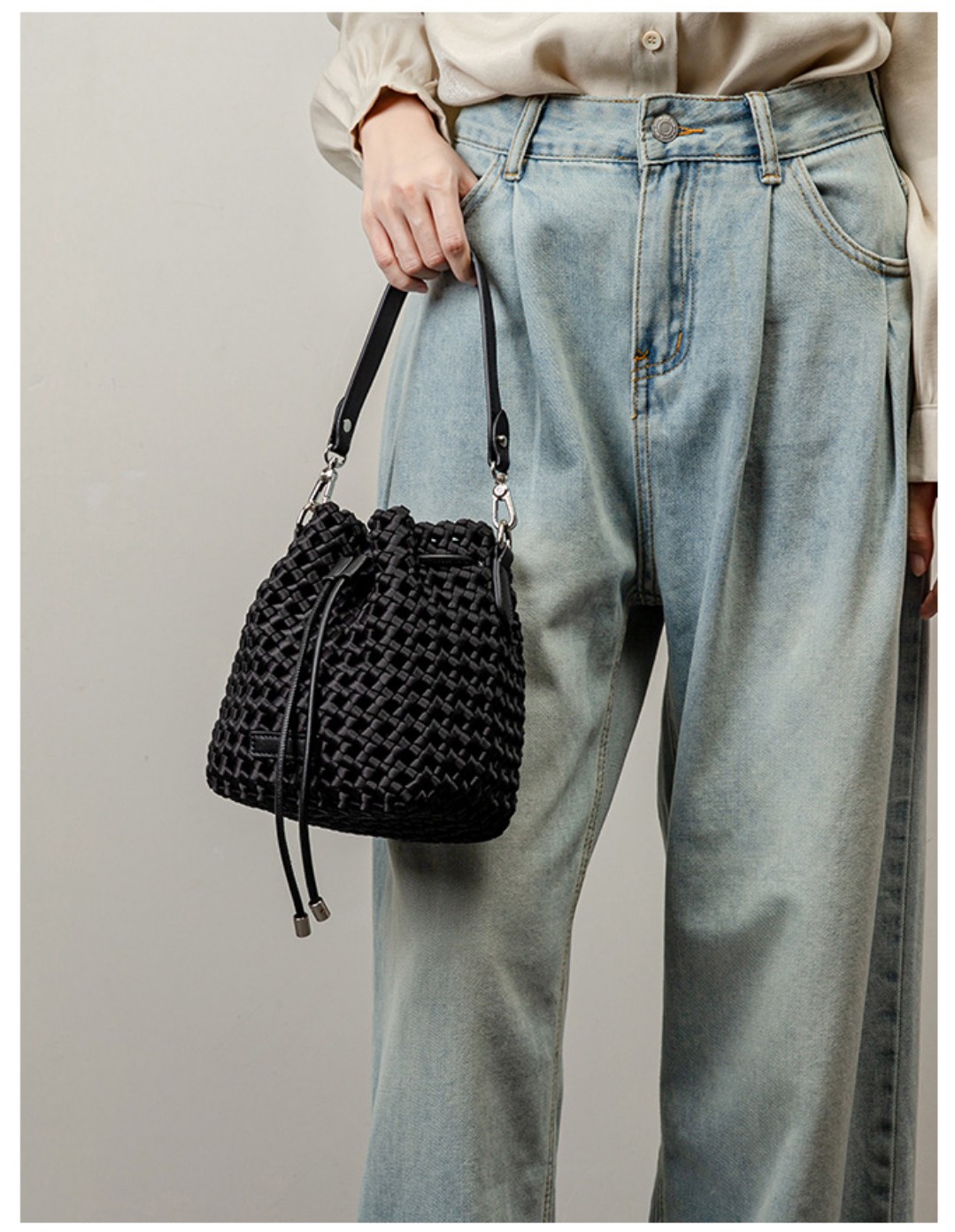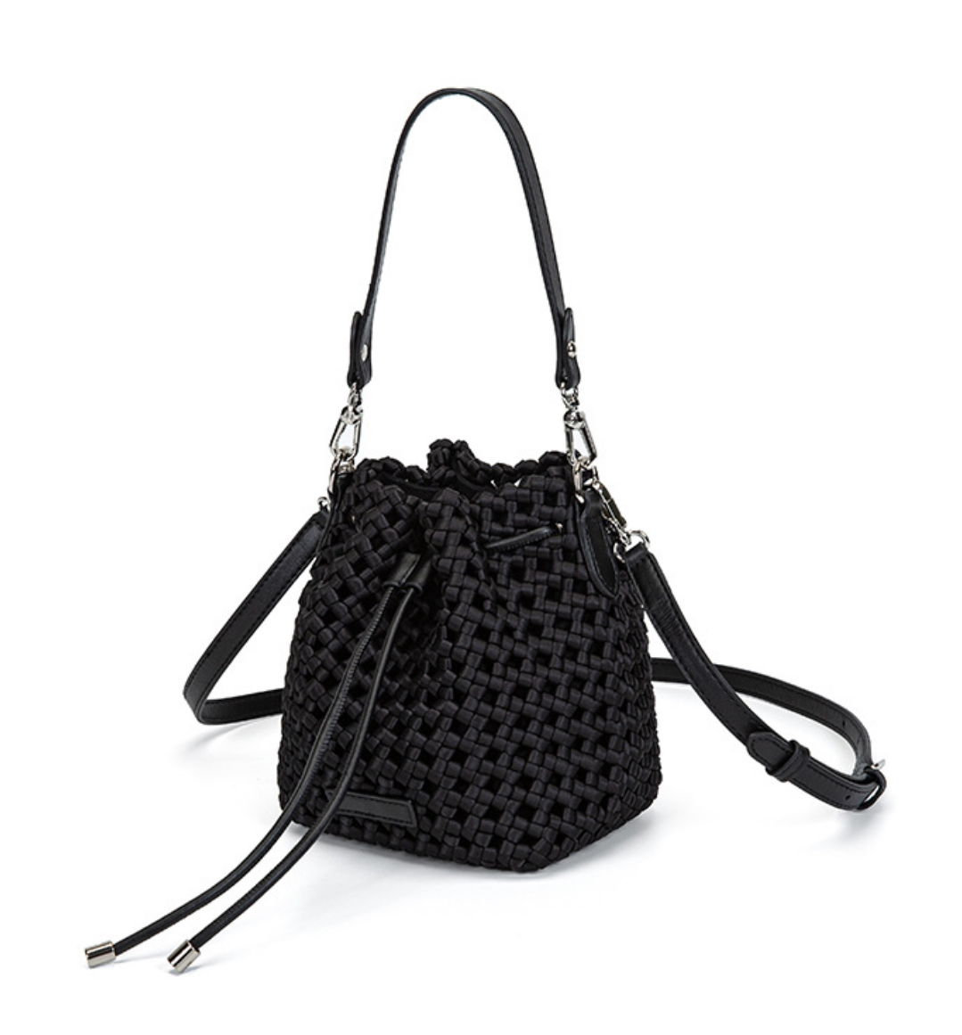 新款尼龙布编织水桶包法式小众高级感手工编织手提单肩斜挎包